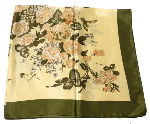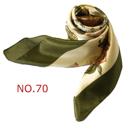 今年もスカーフは大流行!光沢があり、やや固め90cm角シルク調スカーフお勧め。