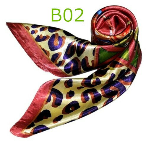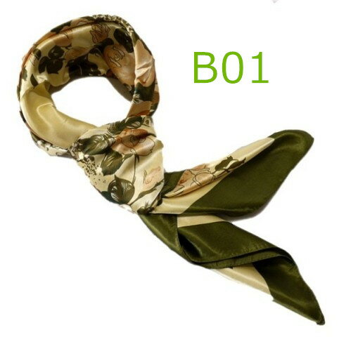 今年もスカーフは大流行!光沢があり、やや固め90cm角シルク調スカーフお勧め。