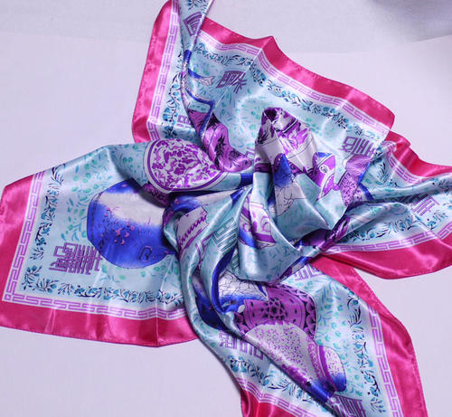 今年もスカーフは大流行!光沢があり、やや固め90cm角シルク調スカーフお勧め。