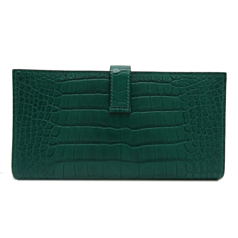 【銀座店】 エルメス ベアンスフレ □Q刻印 2013年製 レディース 長財布 アリゲーターマット グリーン DH55860【大黒屋質店出品】 【中古】【送料無料】【店頭受取対応商品】